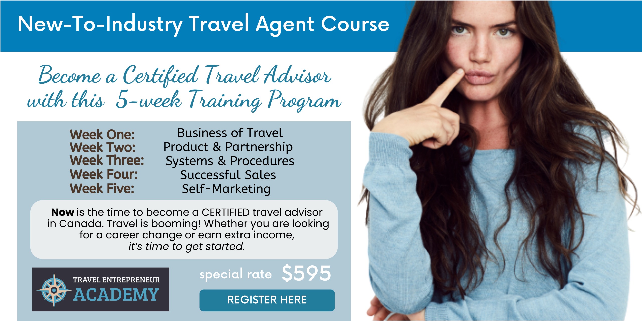 - 5-week Certified Travel Agent Training Course ($1400 value)